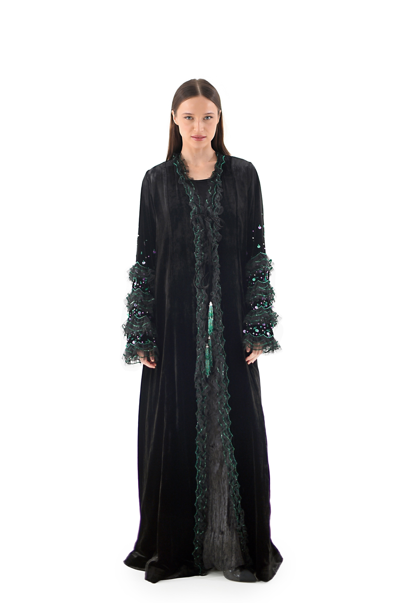 Description: Italian Velvet Green & Purple Embroidery Abaya